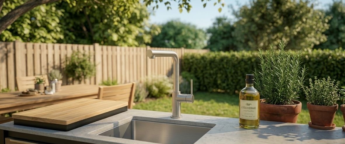 Volledige Autonomie: Maak uw buitenkeuken écht zelfvoorzienend en verhoog het gebruiksgemak van uw tuin.