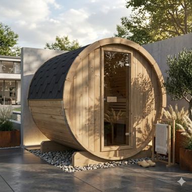 BUITENSAUNA BARRELSAUNA 186 MET VERANDA- Sauna ruimte + relax veranda