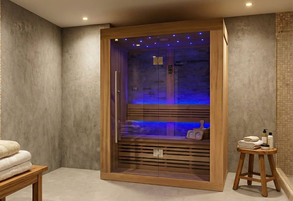 Deze moderne Finse sauna met ingebouwde sterrenhemel past perfect in een strak modern interieur. Het rechtlijnige ontwerp van de sauna maakt hem geschikt als vrijstaande variant en als inbouwvariant. De ingebouwde sterrenhemel met kleurentherapie zorgt voor de ultieme ontspanning. De Geromin Finse sauna's zijn gemaakt van antibacterieel rood cederhout. Door de compacte afmetingen is deze sauna gemakkelijk te installeren in kleine ruimtes en heeft u slechts twee normale (230 V) stopcontacten nodig om hem aan te sluiten.