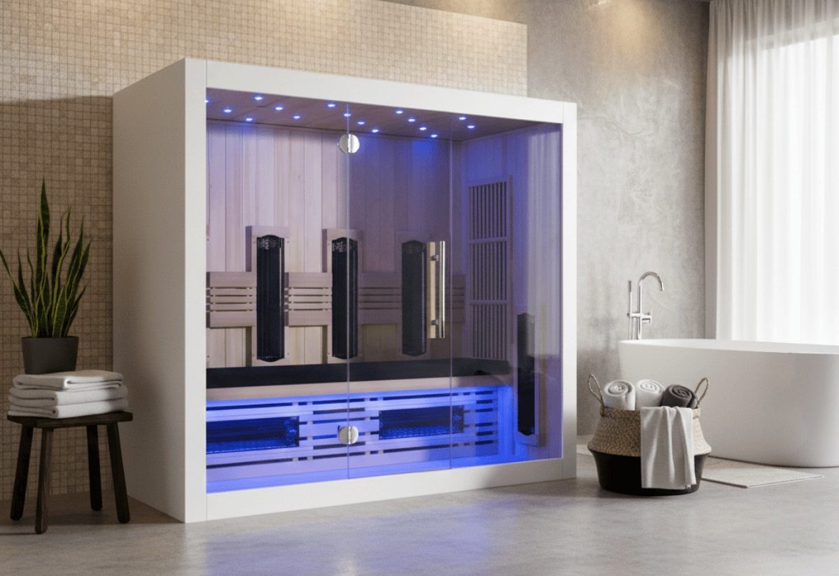Onze 3-4-persoons infraroodcabine 210 Valero past perfect in een modern interieur dankzij het strak design en het grote glazen front. Door de strakke afwerking van de sauna bestaat de mogelijkheid om de sauna in te bouwen, waardoor hij helemaal opgaat in uw interieur, maar ook als vrijstaande sauna geeft het een elegante look. Deze cabine is aan de buitenkant altijd in het wit afgewerkt. Zo is de cabine neutraal en naar wens te combineren & te integreren. De exacte kleurtint is RAL 9003 wit mat. U krijgt er een ligbank van 195 cm of 3 tot 4 zitplaatsen. De cabine is uitgevoerd met 12 Infraheat™ straler.