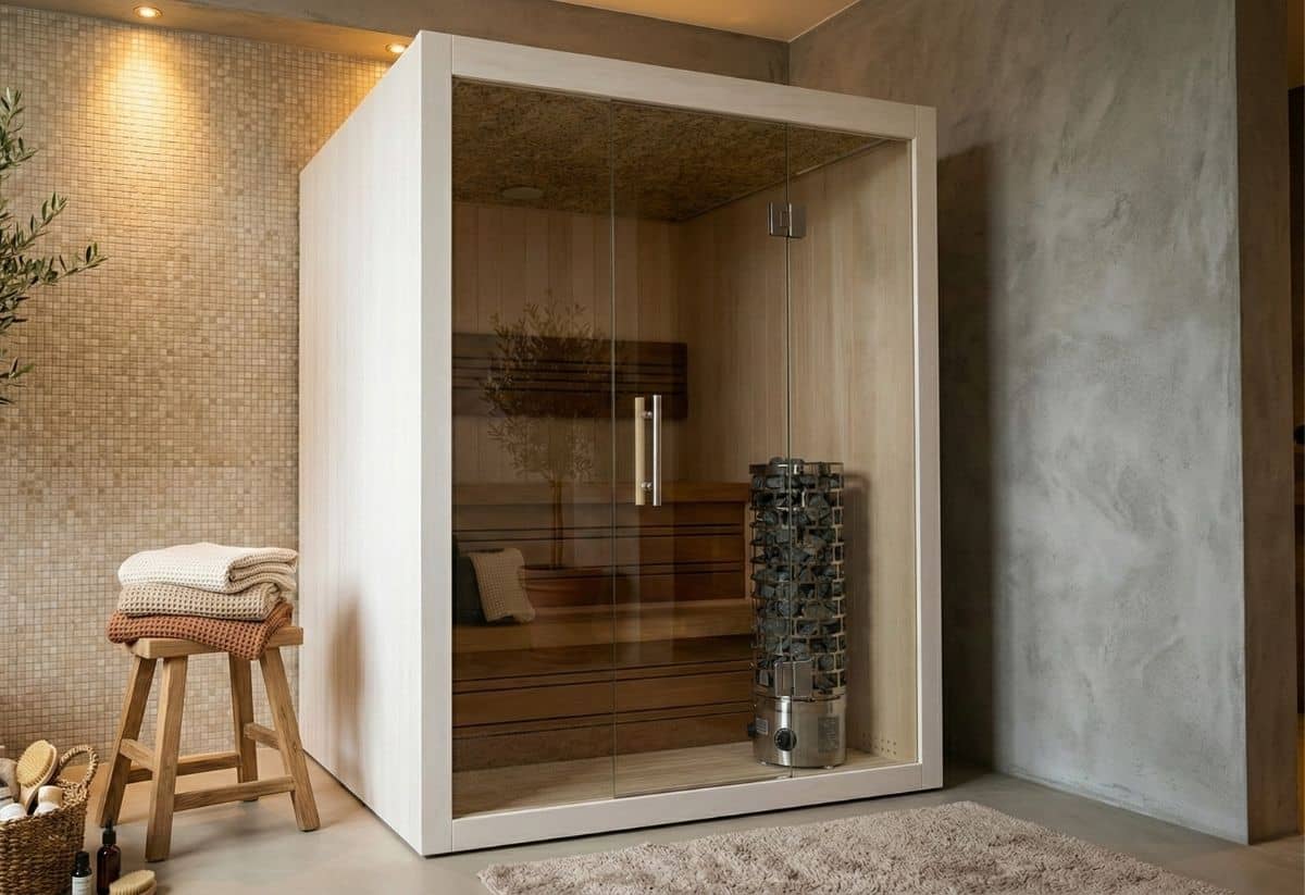 Geniet van pure ontspanning in uw eigen huis met deze stijlvolle en compacte sauna. Uitgerust met twee comfortabele banken – één op lagere hoogte en één hoger geplaatst – kunt u zelf kiezen hoe intens u de warmte ervaart. Op de lage bank geniet u van een mildere temperatuur, terwijl de hoge bank u laat wegdromen in de meest intense saunawarmte.